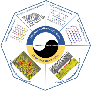 The unique electronic and structural properties of 2D materials have triggered wide research interest in catalysis. The lattice of 2D materials and the interface between 2D covers and other substrates provide intriguing confinement environments for active sites, which has stimulated a rising area of “confinement catalysis with 2D materials.” Fundamental understanding of confinement catalysis with 2D materials will favor the rational design of high-performance 2D nanocatalysts. Confinement catalysis with 2D materials has found extensive applications in energy-related reaction processes, especially in the conversion of small energy-related molecules such as O2, CH4, CO, CO2, H2O, and CH3OH. This review https://doi.org/10.1002/adma.201901996 summarizes the recent advances in the design, applications, and structure–performance analysis of two 2D confinement catalytic systems.